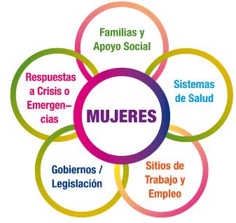 La figura de arriba ilustra la decisión de las mujeres sobre el amamantamiento: la mujer está en el centro y rodeada por círculos que pueden influenciar positiva o negativamente su decisión.